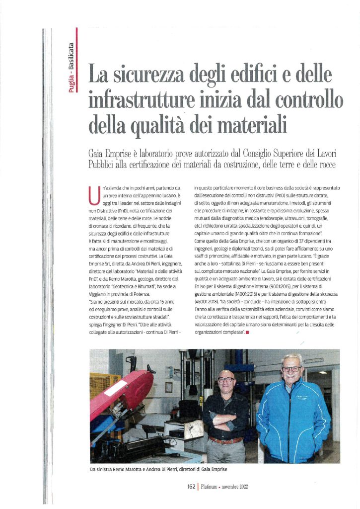 La sicurezza degli edifici e delle infrastrutture inizia dal controllo della qualità dei materiali (Platinum)
